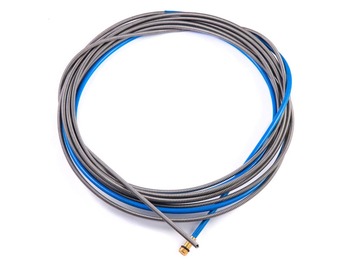 Канал направляющий PRIME (0,6–0,8) 5,4 м синий необходим в сварке типов MIGMAG для подачи сварочной проволоки к соплу сварного пистолета. Подача происходит непосредственно от инвертора или от выносного элемента, подающего проволоку. Фиксация концов канала осуществляется в горелке и в инверторе.