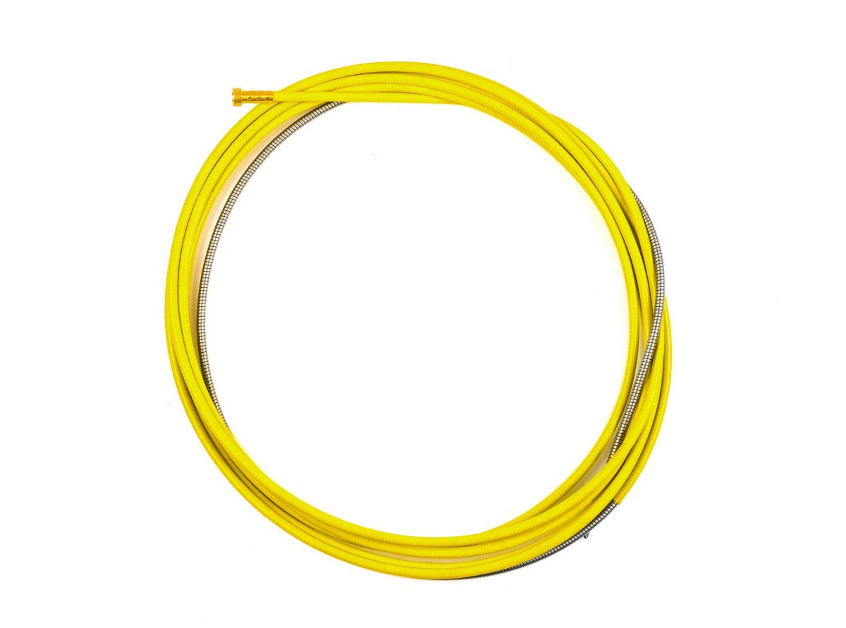 Канал направляющий (1,2–1,6) 4,4 м желтый необходим в сварке типов MIGMAG для подачи сварочной проволоки к соплу сварного пистолета. Подача происходит непосредственно от инвертора или от выносного элемента, подающего проволоку. Фиксация концов канала осуществляется в горелке и в инверторе.