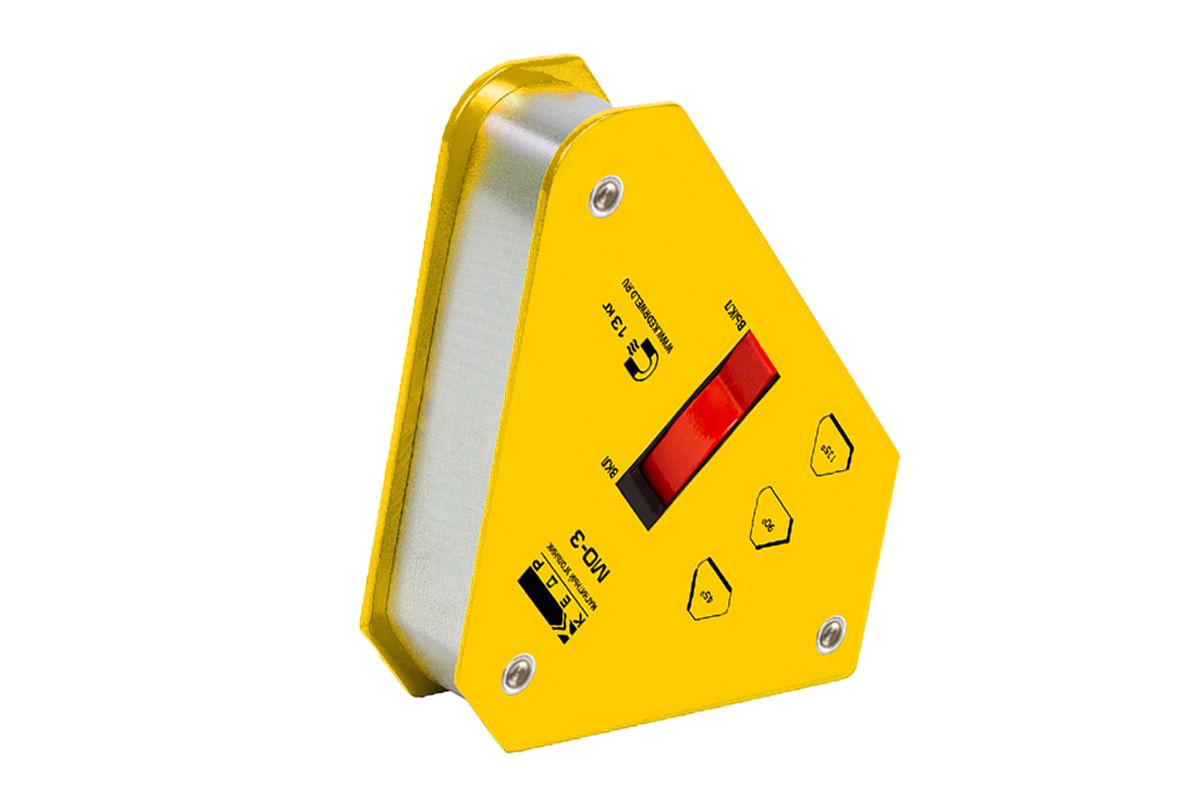 Магнитный угольник МО-3 позволяет производить точное выставление углов в процессе проведения сварочных работ, монтажа стальных конструкций, используется как элемент удержания деталей. Данное приспособление дает возможность осуществлять процесс сварки одному рабочему. Может быть использован для крепления элементов в процессе резки для предотвращения падения частей конструкций.