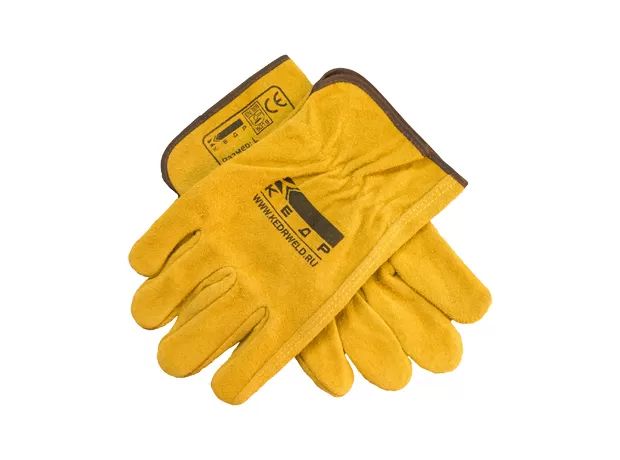 Перчатки спилковые КЕДР Драйвер изготовлены из цельной коровьей шкурки толщиной 1,3 мм. Надежно защищают руку сварщика при работе со шлифмашинкой и острыми предметами. Обеспечивают максимальный комфорт. Обладают усиленной жаростойкостью.