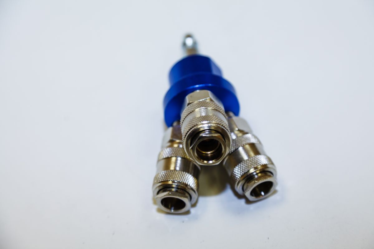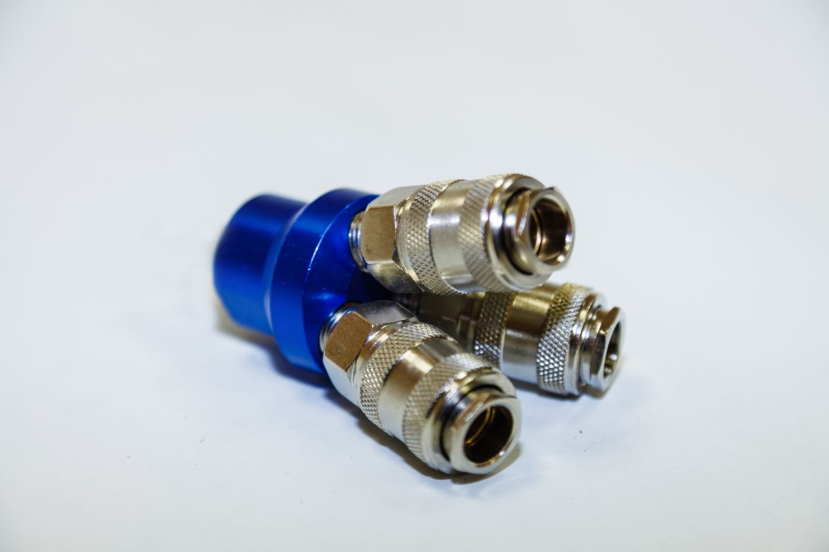 - Подключение трех пневмоинструментов к компрессору